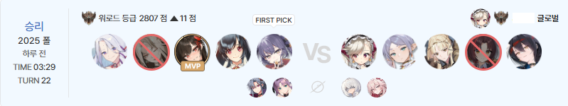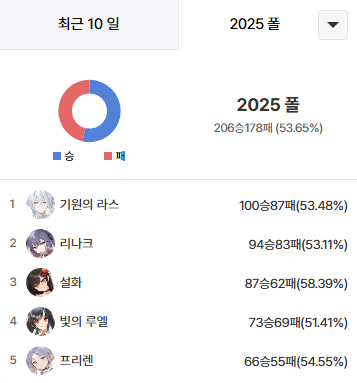 결과는 리나크로 방화영 견제 후 장기전에선 루엘+설화가 프리렌을 정리하는 그림이다